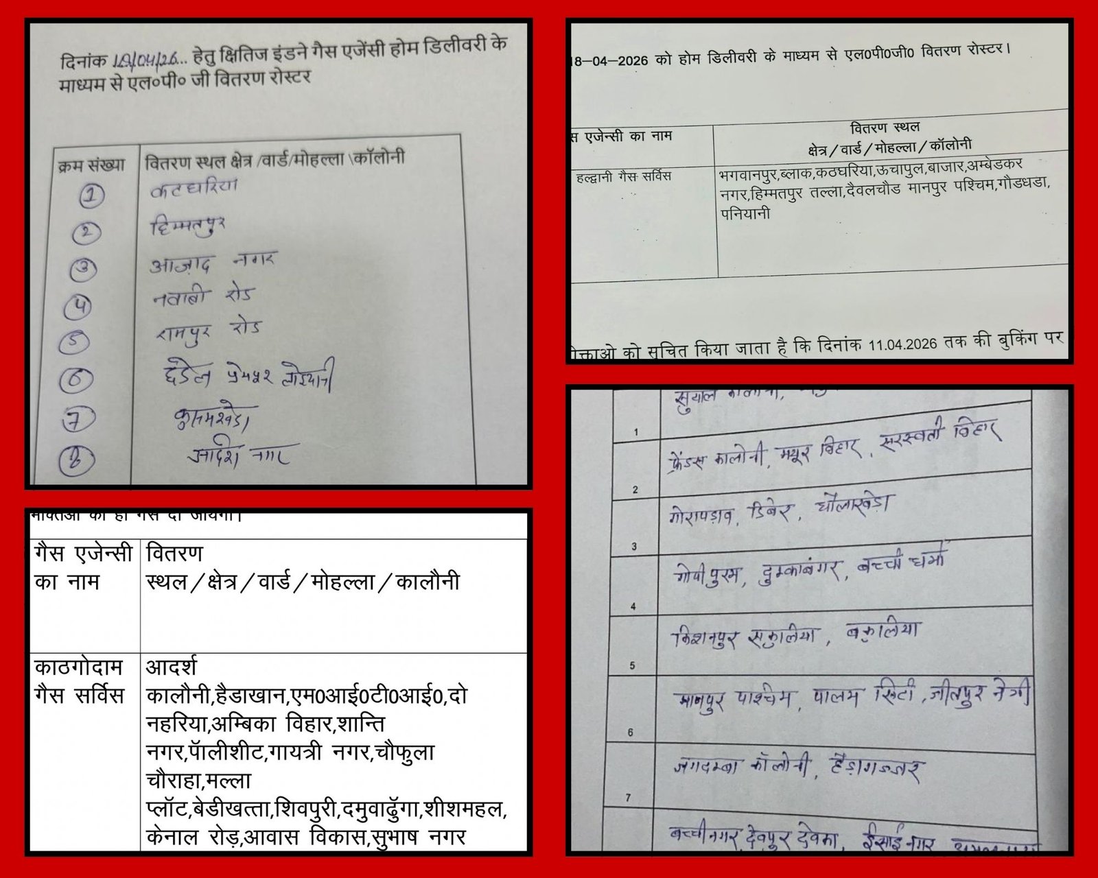 Haldwani शहर में इंडेन गैस की अलग-अलग एजेंसियों ने LPG सिलिंडर बांटने के लिए अलग-अलग रोस्टर जारी किए हैं। 18 अप्रैल के लिए जारी इन रोस्टरों में काठगोदाम व हल्द्वानी समेत आसपास के इलाकों में LPG सिलिंडर बांटे जाने की जानकारी दी गई है।